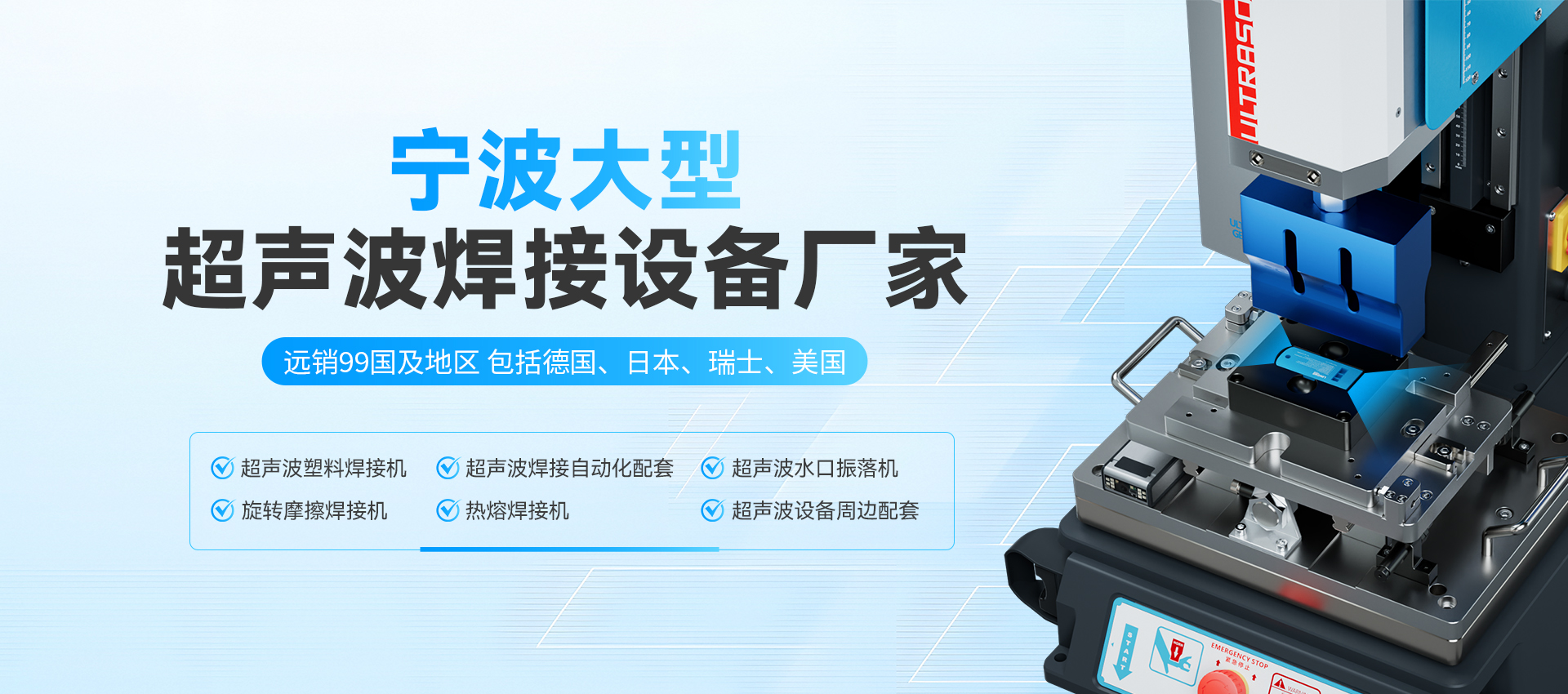 寧波鄞州重信機(jī)械設(shè)備有限公司LINGKEULTRASONICS靈科超聲波寧波服務(wù)中心,從事超聲波設(shè)備的生產(chǎn)開(kāi)發(fā)、銷(xiāo)售及維修服務(wù),產(chǎn)品包括伺服超聲波塑焊機(jī)、超聲波焊接自動(dòng)化配套、超聲波水口振落機(jī)、旋轉(zhuǎn)摩擦焊接機(jī)、熱熔焊接機(jī)、超聲波清洗機(jī)、超聲波模具等,并可為客戶(hù)定制設(shè)計(jì)各類(lèi)非標(biāo)機(jī)寧波鄞州重信機(jī)械設(shè)備有限公司。